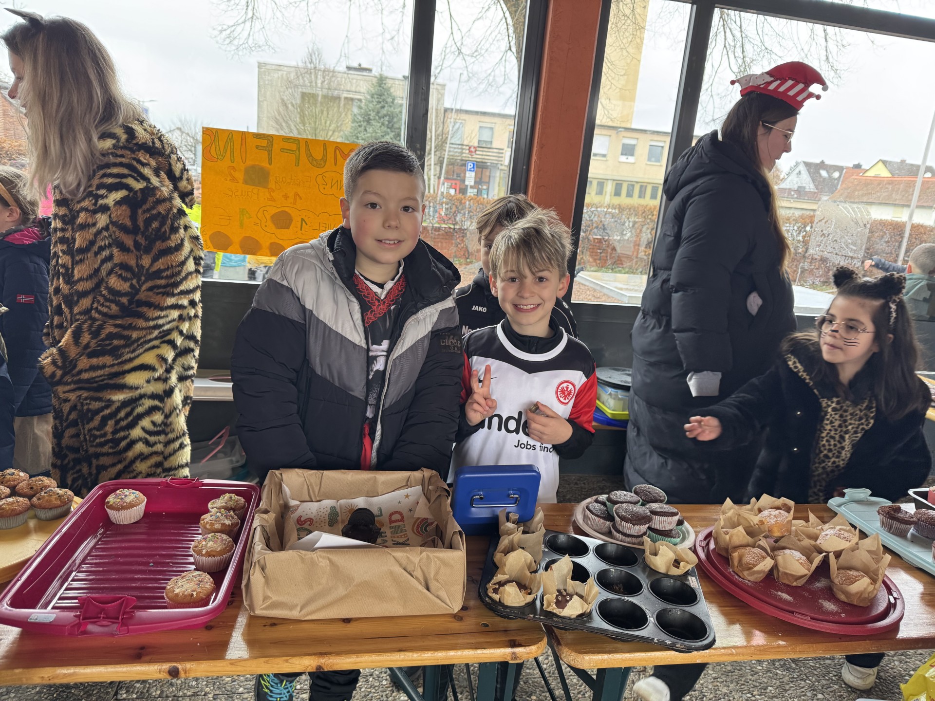 Anschließend freuten sich alle über den Muffinverkauf unserer SV. Alle Klassensprecherinnen und Klassensprecher hatten gemeinsam mit unserer SV-Lehrerin Frau Brach wieder einen Muffinverkauf vorbereitet. Viele fleißige Eltern ermöglichten dies durch ihr Backen.