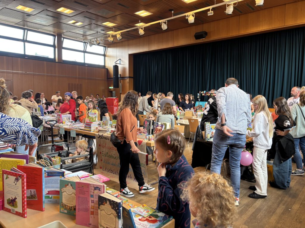 Am 16. Mai 2025 fand im Bürgerhaus der erste Kinderbuchflohmarkt der Anna-Freud-Schule statt und wurde gleich zu einem besonderen Ereignis für alle Beteiligten. Rund 70 Kinder hatten sich angemeldet und verwandelten das Bürgerhaus am Nachmittag in einen lebendigen Marktplatz rund ums Buch.