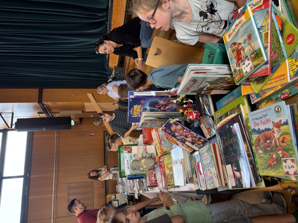 Schon beim Aufbau war die Aufregung spürbar – nicht nur bei den Kindern, sondern auch bei den Lehrkräften. Mit viel Liebe zum Detail wurden die Stände dekoriert. Die jungen Buchhändlerinnen und Buchhändler präsentierten stolz ihre Bücher, tauschten sich aus und sammelten erste Erfahrungen im Verhandeln. Die Verkaufsstände waren gut besucht und viele Kinder konnten an diesem Tag ihr Sparschwein füttern. Besonders erfreulich war, dass einige sogar einen Teil ihres Geldes für einen guten Zweck spenden wollten.