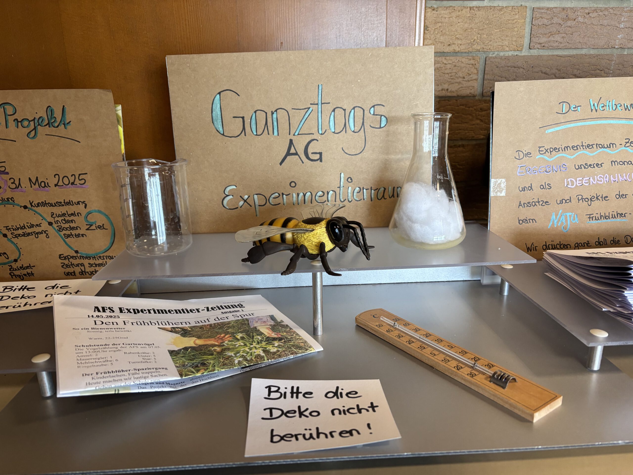 Wir sind stolz darauf, seit dem 15. Mai 2018 – neben unserem Spielezimmer und unserem Kreativraum – auch einen eigenen Experimentierraum nutzen zu können. Dieser wird sowohl im Rahmen des Sachunterrichts der einzelnen Klassen als auch im pädagogischen Ganztagsangebot genutzt.