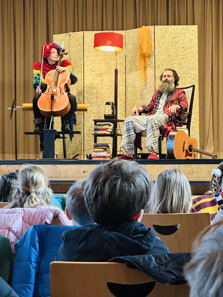 Gemeinsam mit Musik von Gitarre, Cello, Vibraphon und viel Gesang springen wir von Gestern auf Übermorgen, von Morgen nach Vorgestern und landen immer wieder im Heute…